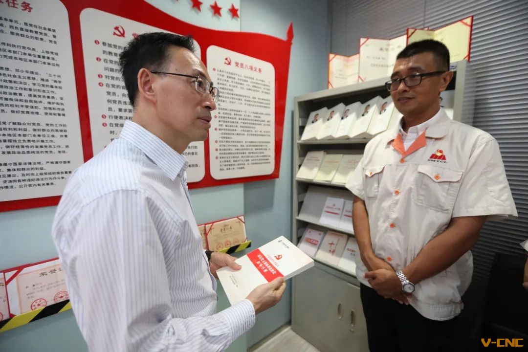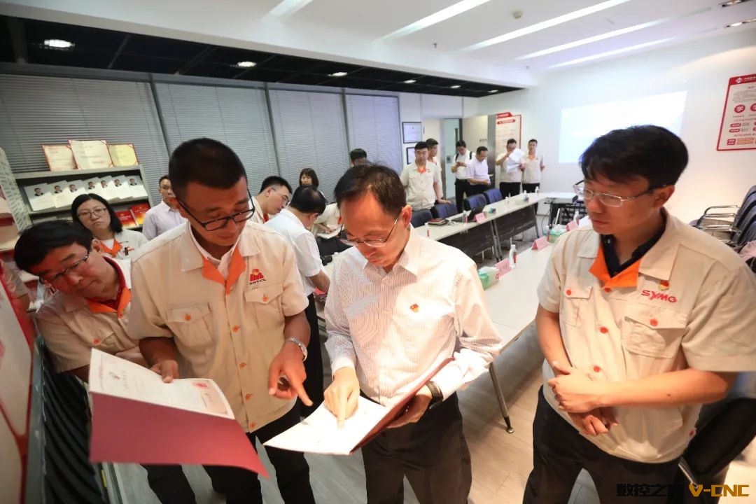 于旭波翻阅通用型技术党支部“三会一课”记录。随后,又拿起一本本专利和荣誉证书,与获奖共产党员交流,详细询问产品专利及奖项情况,了解这些党员对核心技术突破、技术和市场关系、工作改进等想法和思路,称赞他们工作非常有效,都是科技创新的带头人,真正用实际行动践行着党员的模范带头作用。
