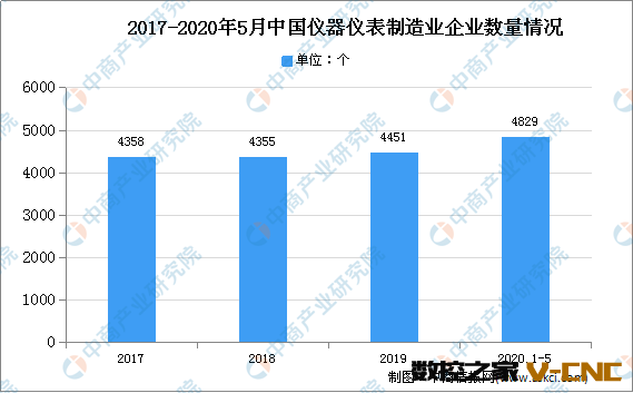 自2011年以来,我国仪器仪表制造业企业单位数呈递增趋势,该趋势与我国仪器仪表行业的收入规模变化趋势基本相同。据数据显示,2020年1-5月我国仪器仪表制造业企业数量为4829个,同比增长8.64%。