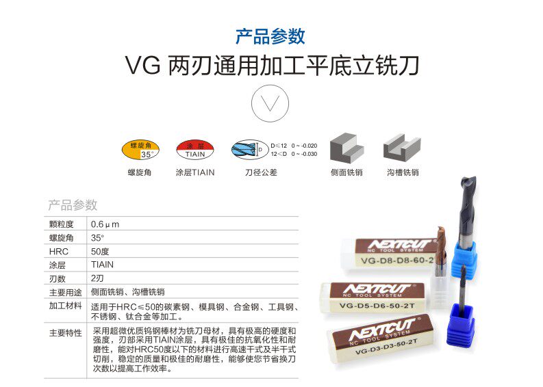 NEXTCUT钨钢铣刀VG通用加工涂层铣刀硬质合金刀