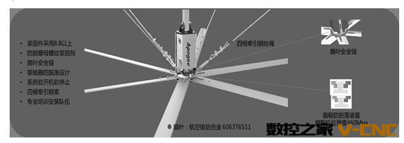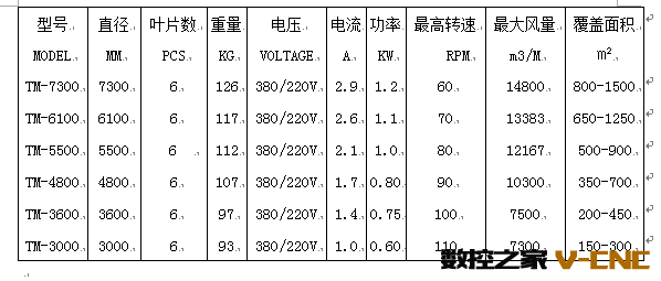1. 扇叶直径:7.3米 2. 扇叶片数:6片