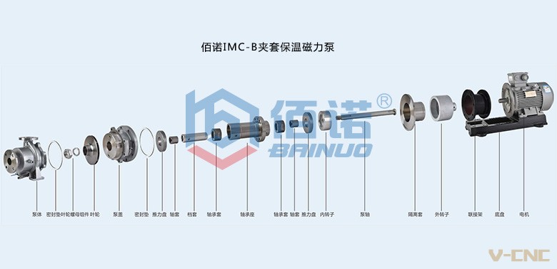 夹套保温磁力泵磁材采用强磁耐高温材料,确保足够的磁传力矩;隔离套设计成不等截面结构,较等截面筒型隔离套的涡流损失减少1/2;采用独特设计的新型保温箱结构,保证了介质在输送过程中不会冷凝,同时温度过高时,保温箱中的可通入冷却水,带走过多的热量,可以有效的保证电机和磁钢的正常运转;采用流体动力润滑轴承,比原有磁力泵的同心圆式轴承运转可靠,寿命较长;采用新型的保温结构,确保介质在运转过程中不会结晶;可以根据用户要求配备断流自动停车装置,以避免泵的干运转。